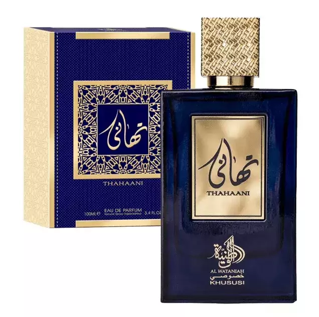 Thahaani de Al Wataniah é um perfume Oriental Especiado Compartilhável. Esta é uma nova fragrância. Thahaani foi lançada em 2022. As notas de topo são: Pêssego, Rosa, Folhas de Violeta, Osmanthus, Peônia e Aldeídos. As notas de coração são: Tuberosa, Flor de Laranjeira, Ameixa, Heliotrópio e Rosa. As notas de fundo são: Âmbar, Sândalo, Almíscar e Musgo de Carvalho.